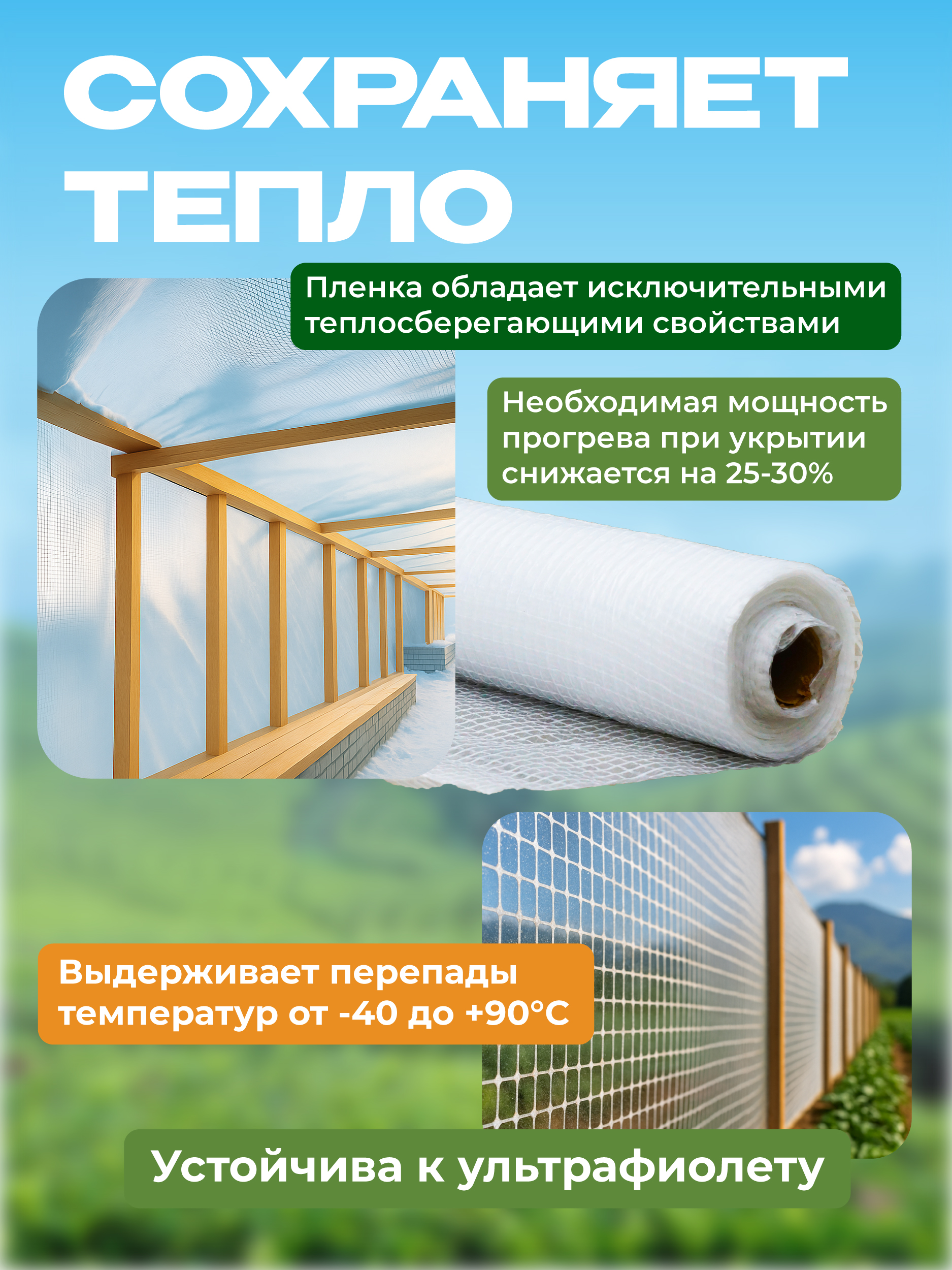 Средняя степень затемнения делает её подходящим решением для теплиц, грядок и садов,
