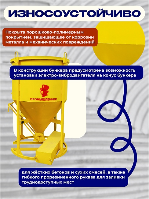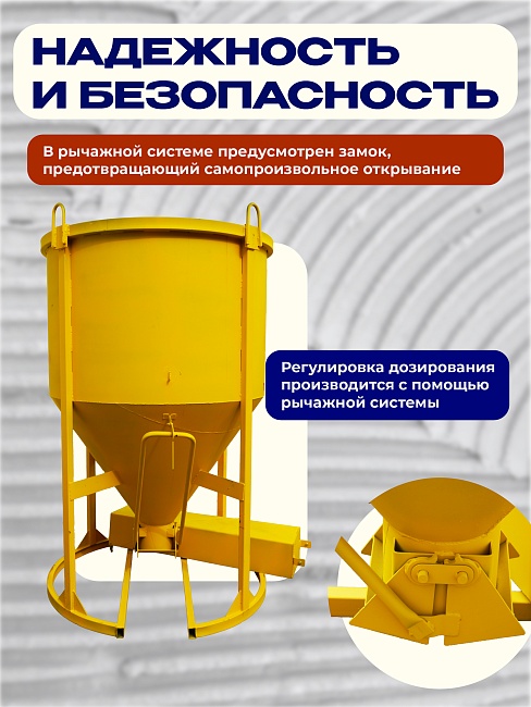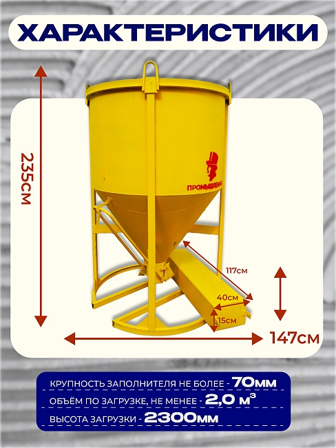 Бадья для бетона БН 2,0 м3 с лотком используется для кратковременного хранения и транспортировки бетонной смеси, других строительных растворов к месту непосредственного использования.