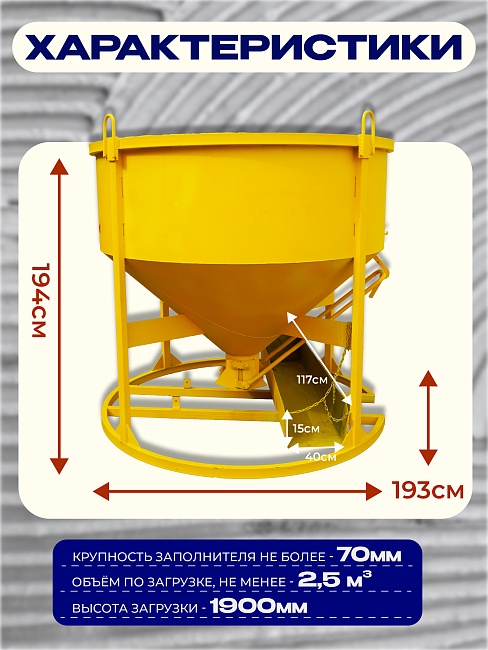Бадья для бетона БН 2,5м3 низкая с лотком