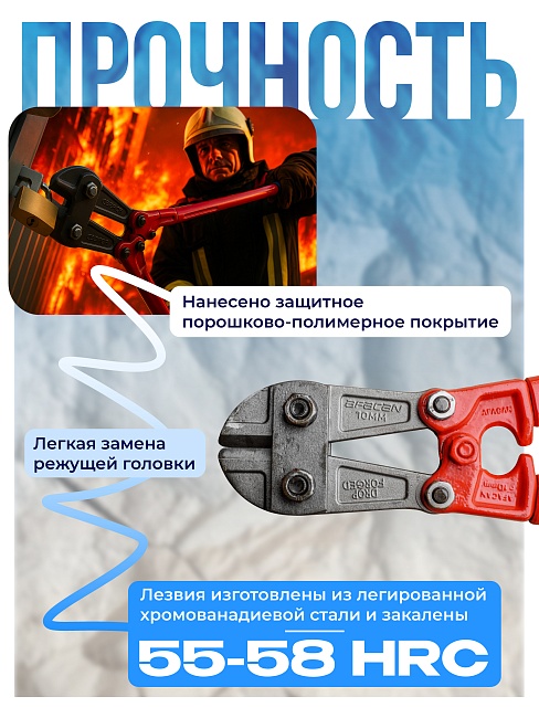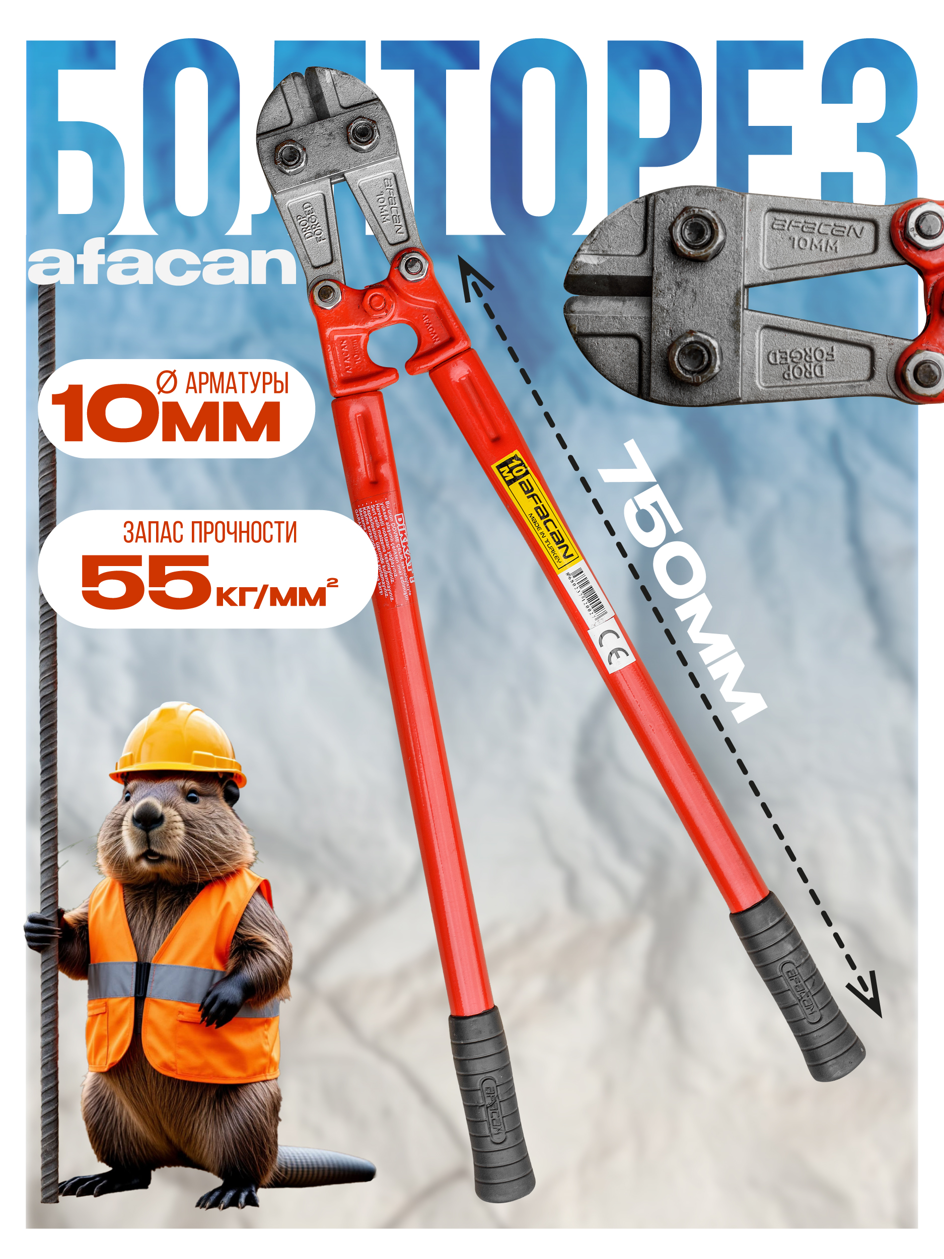 Болторез Afacan 10M служит для удаления болтов различного типа, перерубания тросов, проволок, металлических стержней.