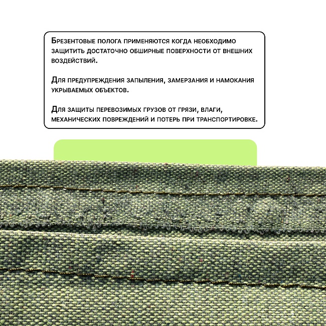 Полог из брезента изготовлен из натуральных материалов, таких как лен и хлопок, имеет защитную пропитку, увеличивающую его защитную функцию и продлевающую срок эксплуатации. Металлические кольца для крепления обеспечивают удобный монтаж, равномерное натяжение, предотвращают разрывы по краям.