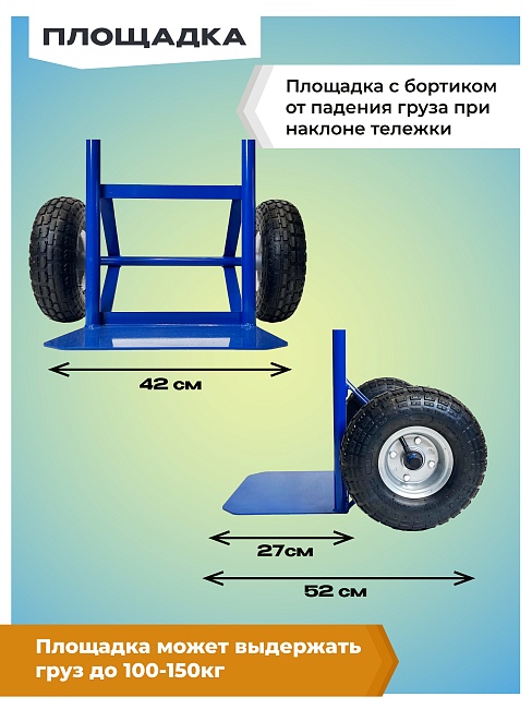 Грузовая тележка двухколесная Д-150П с откидной полкой (пневмо колеса) 250 мм