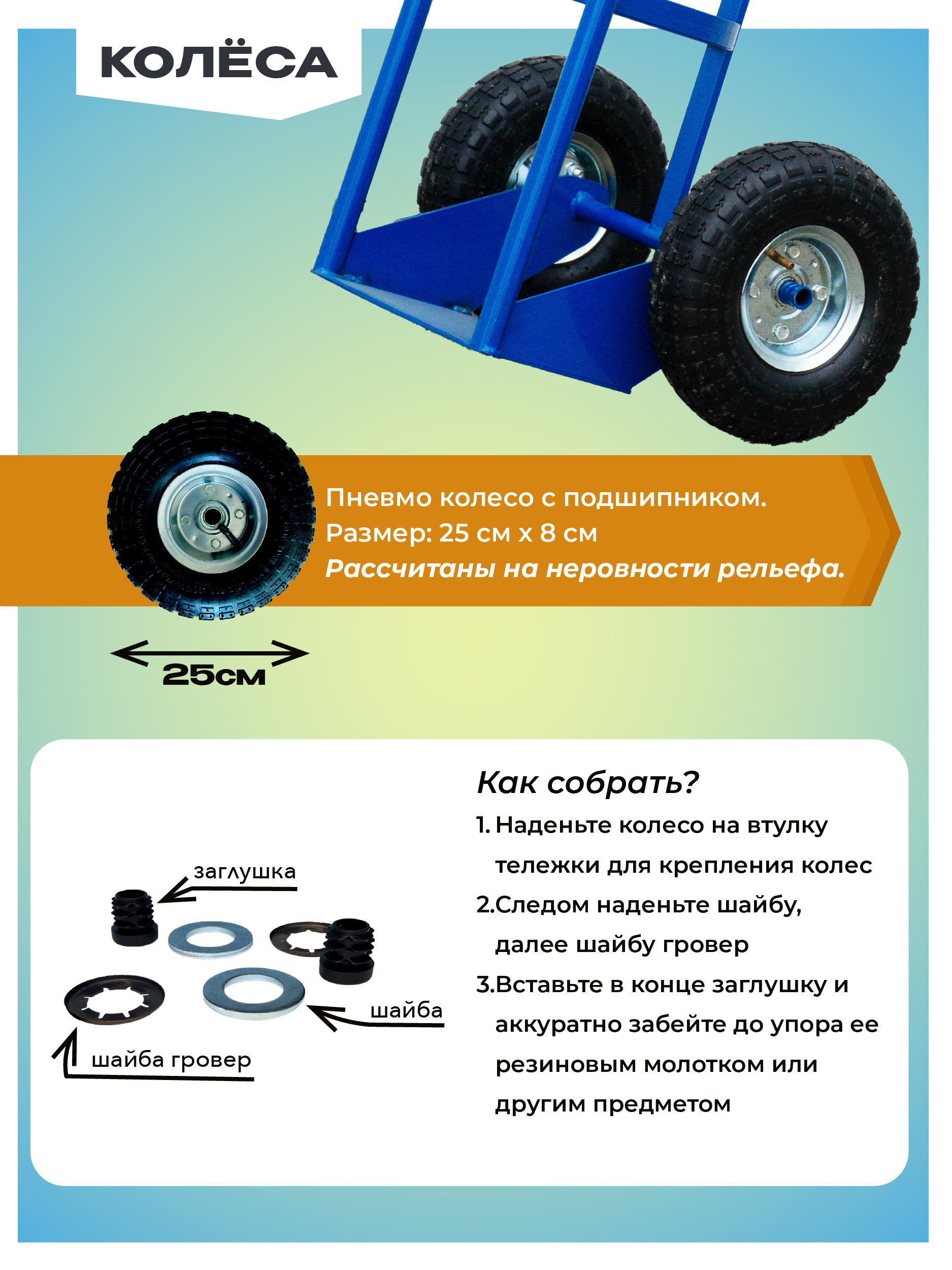 Грузовая тележка двухколесная Д-150 (пневмо колеса) 250 мм