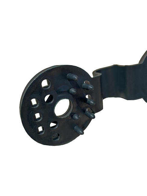 Нижняя опора для кронштейна ЗУС предназначена для закрепления кронштейна с предварительно натянутой защитно-улавливающей сетью на каркасе здания. Изделие изготавливается из стали с применением широкого многослойного сварного шва. В опору вставляется кронштейн и зажимается при помощи болта М16 и гайки аналогичного диаметра.