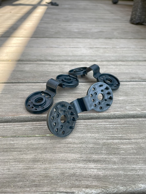Крепеж для фиксации укрывных материалов. Используется совместно со всеми видами сеток, такими как затеняющая, ограждающая, маскировочная, для сеток, которые применяют для защиты от птиц, грызунов, а также армированной пленки, тентов и брезентов.