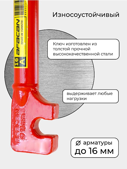 Ручной ключ для гибки арматуры Afacan 16A, предназначен для гибки в холодном состоянии арматурной стали, на предприятиях по производству железобетонных изделий, специализированных арматурных производствах и на строительных площадках под навесом.