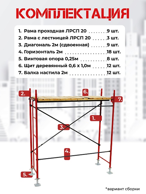 Леса строительные рамные ЛРСП 20 комплект 4×2 м