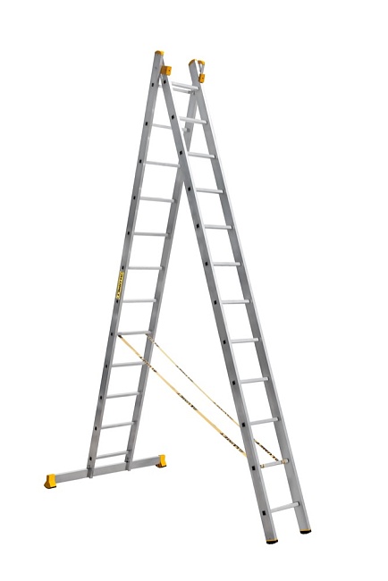 Двухсекционная лестница серии Ал 9212 – это многофункциональная стремянка, которая может использоваться как обычная стремянка, так и приставная лестница, благодаря специальным самоблокирующимся шарнирам. В каждой секции содержится по 12 ступеней. Отличается увеличенной толщиной стенки профиля и шириной траверсы, обеспечивая дополнительную прочность и создавая комфорт при использовании.