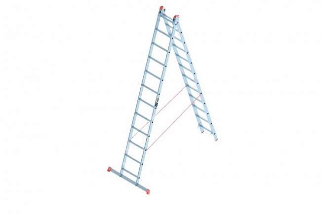 Двухсекционная лестница серии Ал 9214 – это многофункциональная стремянка, которая может использоваться как обычная стремянка, так и приставная лестница, благодаря специальным самоблокирующимся шарнирам. В каждой секции содержится по 14 ступеней. Отличается увеличенной толщиной стенки профиля и шириной траверсы, обеспечивая дополнительную прочность и создавая комфорт при использовании.