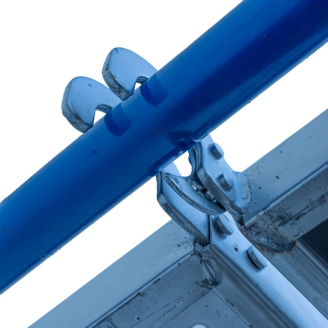 Основная задача диагонали соединение рам строительных лесов и придание дополнительной жесткости и устойчивости конструкции. Две горизонтальные перекладины крепятся между собой при помощи шарнира, образуя единый каркас. Диагональная связь для строительных лесов изготавливается из стальной трубы диаметром 25 мм с толщиной стенки 1,5 мм.
