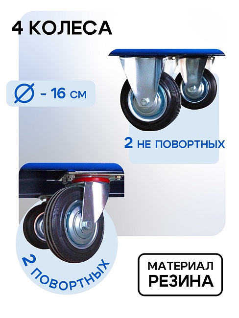 Высота ручки, мм 770 Вес тележки, кг 17,1 Материал сталь Страна производитель Россия