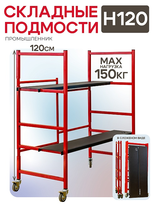Подмости двухсекционные складные малярные многоярусные на колесах H120