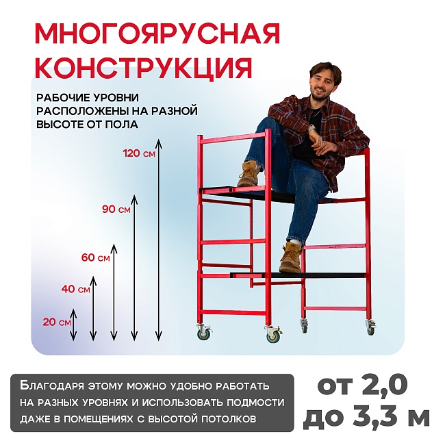 Помост малярный многоярусный на колесах — это незаменимый инструмент для проведения строительных и ремонтных работ на высоте. Он представляет собой надёжную и устойчивую конструкцию, которая позволяет рабочим безопасно и удобно выполнять свои задачи.