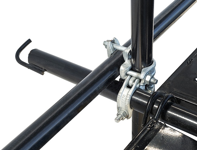 Основная задача диагонали соединение рам строительных лесов и придание дополнительной жесткости и устойчивости конструкции. Две горизонтальные перекладины крепятся между собой при помощи шарнира, образуя единый каркас. Диагональная связь для строительных лесов изготавливается из стальной трубы диаметром 25 мм с толщиной стенки 1,5 мм.