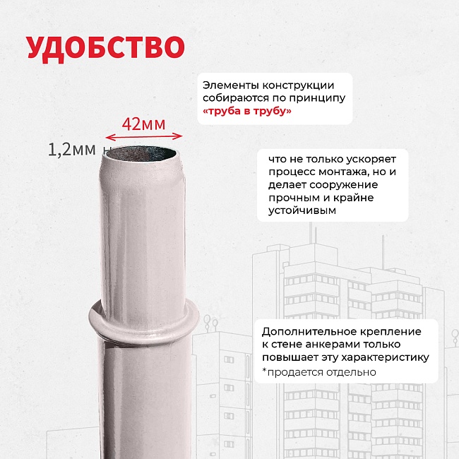 Внимание! Крепежная система устанавливается строго на несущих вертикальных стойках или рамах лесов.