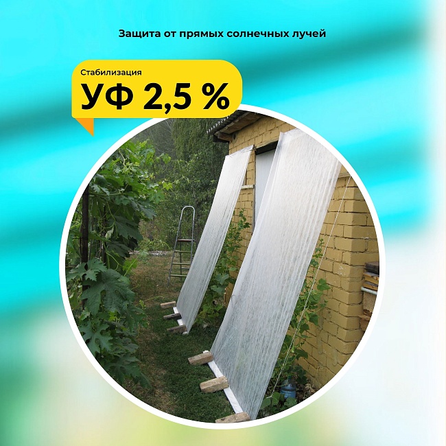 и защиты светолюбивых растений от прямого солнца. Полотно снижает интенсивность солнечных лучей,