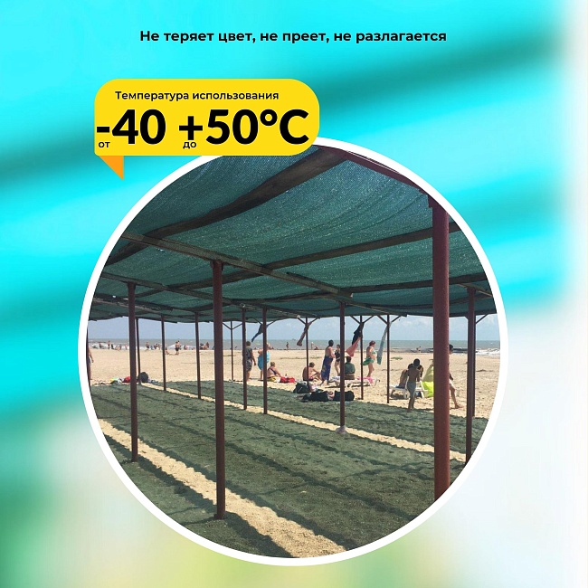 Сетка затеняющая, как и сетка фасадная, используется в качестве укрывного, защитного и теневого материала. Модель Сетка затеняющая фасадная 70% размером 3х50 метров имеет улучшенную затеняющую функцию, которая оптимально подходит для укрытия садовых и дачных участков, сельскохозяйственных полей. Но лучше всего ее использовать для создания теневых навесов, зон отдыха, временных заборов. Она не просто создает тень, но и обеспечивает незначительное снижение температуры в теневой зоне за счет пропуска всего 35% солнечных лучей.