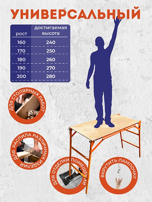 Артикул: d67475fd6df3 Категории: Малярные столики, Подмости строительные