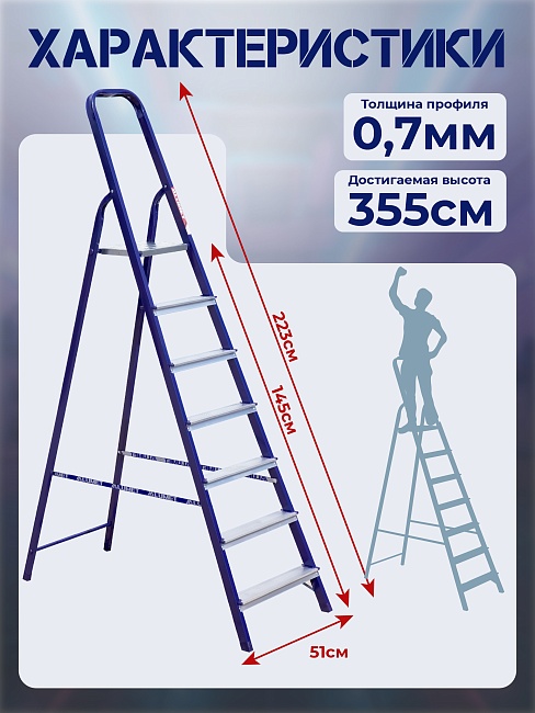 Стремянка Alumet M 8407 предназначена для выполнения ремонтно-технических работ на небольших высотах. Выполнена из стали с полимерной окраской и рассчитана на высокие нагрузки.