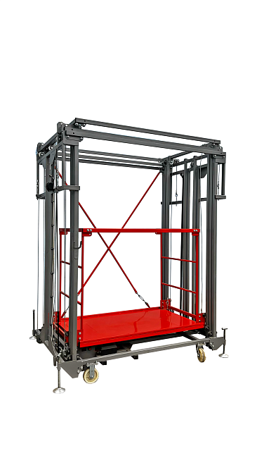 Моторизованная вышка-тура МВТ-А-006 — полностью автономная самоходная подъёмная платформа. Подъём рабочей площадки до 6 метров осуществляется электрической лебёдкой 12 В от аккумулятора. Управление радиопультом или дублирующим кнопочным постом. Грузоподъёмность 250 кг, идеальна для внутренних и наружных работ без доступа к сети 220 В.