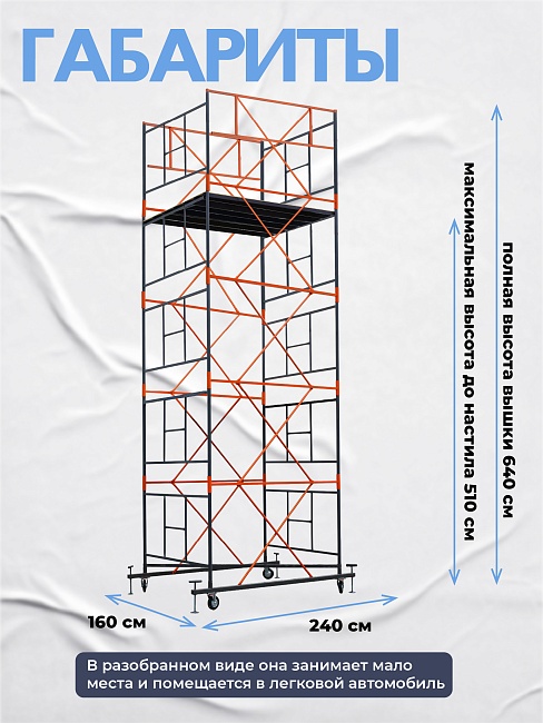 Передвижная сборно-разборная вышка-тура TeaM высотой 6,4 м предназначена для проведения